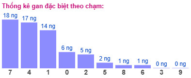 Thống kê cho thấy chạm đề lâu chưa xuất hiện nhất là chạm 7 (bao gồm 19 cặp số có chứa số 7), đã 18 ngày chưa ra.