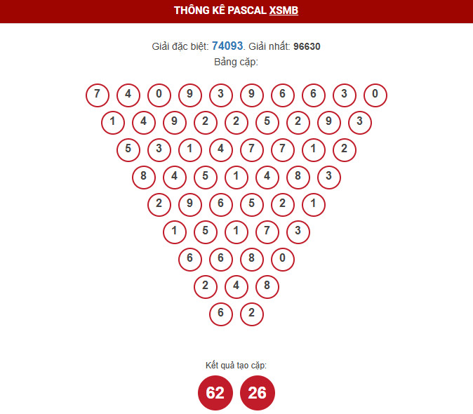 - Dựa vào thống kê Pascal, tham khảo cặp số đặc biệt dễ ra : 62 - 26