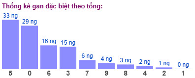 Thống kê cho thấy tổng đề lâu chưa xuất hiện nhất là tổng 5 (bao gồm 10 cặp số: 05, 14, 23, 32, 41, 50, 69, 78, 87, 96) đã 33 ngày chưa ra.