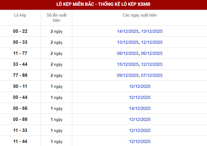 ⇒ Xem thêm: Bảng thống kê tần suất lô miền Bắc chi tiết.