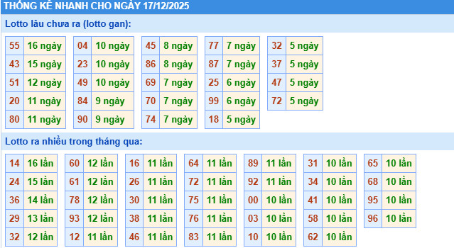 Tham khảo dự đoán xổ số miền bắc 17/12/2025 chuẩn xác, bạn sẽ nhận được các thông tin chi tiết về giải đặc biệt, giải tám, đầu đuôi, bao lô 2 số cũng như các thống kê khác đáng chú ý.