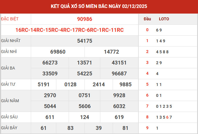 Ngày 2/12/2025, giải đặc biệt của Xổ số Miền Bắc thuộc về dãy số 90986, trong đó cặp 86 là tâm điểm dành cho những ai quan tâm tới các dấu hiệu lặp lại.
