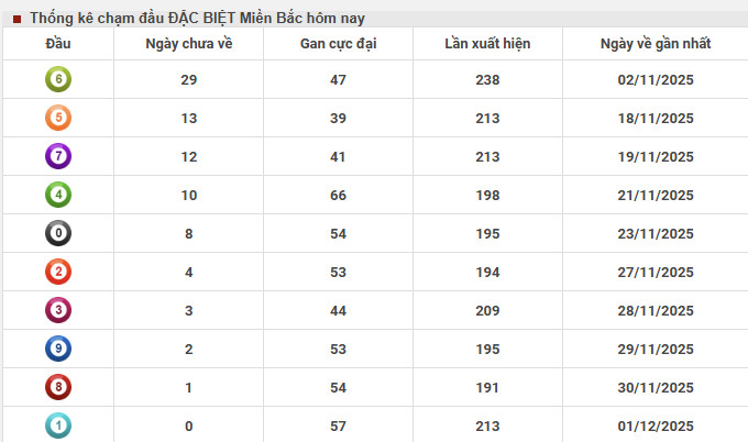 Thống kê miền Bắc nhanh ngày 3/12/2025