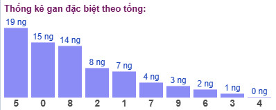 Thống kê cho thấy tổng đề lâu chưa xuất hiện nhất là tổng 5 (bao gồm 10 cặp số: 05, 14, 23, 32, 41, 50, 69, 78, 87, 96) đã 19 ngày chưa ra.