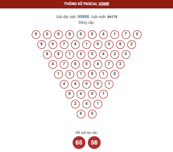 - Dựa vào thống kê Pascal, tham khảo cặp số đặc biệt dễ ra : 65 - 56