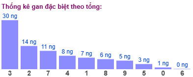 Thống kê cho thấy tổng đề lâu chưa xuất hiện nhất là tổng 3 (bao gồm 10 cặp số: 03, 12, 21, 30, 49, 58, 67, 76, 85, 94) đã 30 ngày chưa ra.