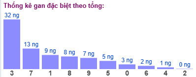 Thống kê cho thấy tổng đề lâu chưa xuất hiện nhất là tổng 3 (bao gồm 10 cặp số: 03, 12, 21, 30, 49, 58, 67, 76, 85, 94) đã 32 ngày chưa ra.