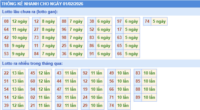 ​Thống kê lô tô miền Bắc nhanh ngày 1/2/2026