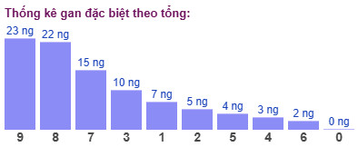 Thống kê cho thấy tổng đề lâu chưa xuất hiện nhất là tổng 9 (bao gồm 10 cặp số: 09, 18, 27, 36, 45, 54, 63, 72, 81, 90) đã 23 ngày chưa ra.
