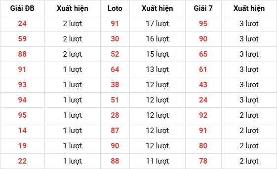 - Lô về nhiều nháy: 91 (2 lần)
