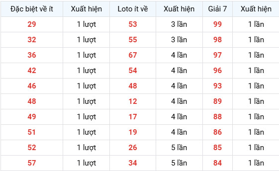 Nhóm Giải 7 xuất hiện ít (1 lần):