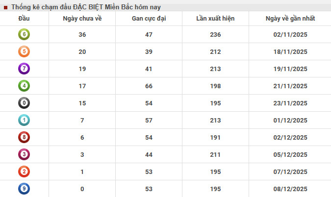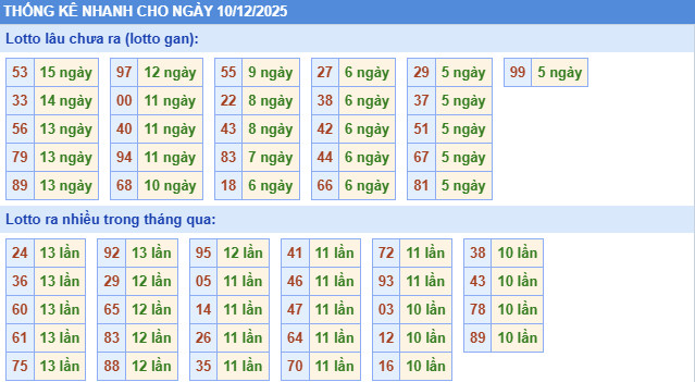 Thống kê miền Bắc nhanh ngày 10/12/2025