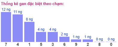 Thống kê cho thấy chạm đề lâu chưa xuất hiện nhất là chạm 7 (bao gồm 19 cặp số có chứa số 7), đã 12 ngày chưa ra.