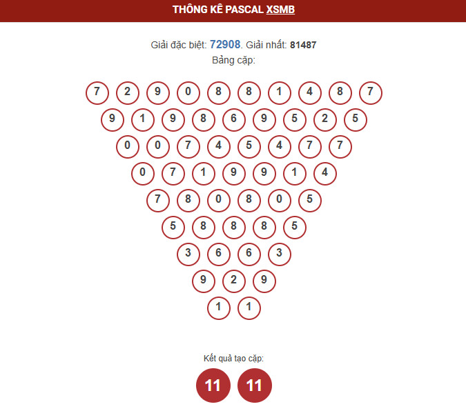 - Dựa vào thống kê Pascal, tham khảo cặp số đặc biệt dễ ra : 11