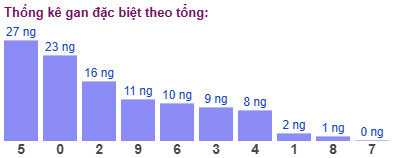Thống kê cho thấy tổng đề lâu chưa xuất hiện nhất là tổng 5 (bao gồm 10 cặp số: 05, 14, 23, 32, 41, 50, 69, 78, 87, 96) đã 27 ngày chưa ra.