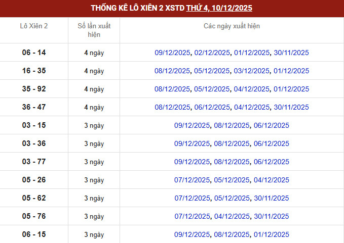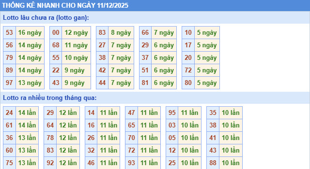 Thống kê miền Bắc nhanh ngày 11/12/2025