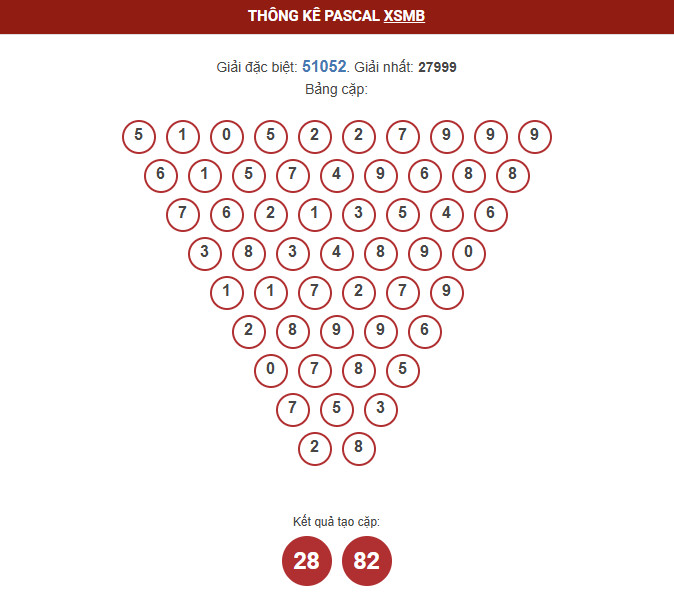 - Dựa vào thống kê Pascal, tham khảo cặp số đặc biệt dễ ra : 28 - 82