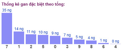 Thống kê cho thấy tổng đề lâu chưa xuất hiện nhất là tổng 7 (bao gồm 10 cặp số: 07, 16, 25, 34, 43, 52, 61, 70, 89, 98) đã 35 ngày chưa ra.