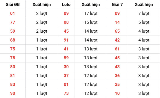 Nhóm loto tần suất cao: 09, 08, 45, 91.