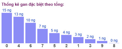 Thống kê cho thấy tổng đề lâu chưa xuất hiện nhất là tổng 0 (bao gồm 10 cặp số: 00, 19, 28, 37, 46, 55, 64, 73, 82, 91) đã 15 ngày chưa ra.