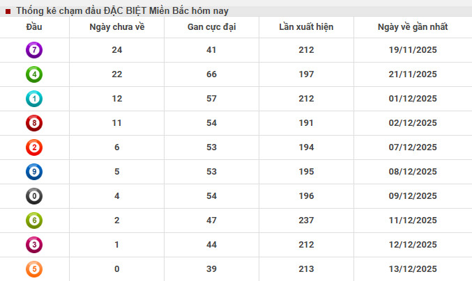 Thống kê chạm đầu đặc biệt XSMB 15/12/2025 hôm nay