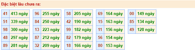 • Cặp số 41 đến nay vẫn chưa ra là 413 ngày