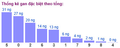 Thống kê cho thấy tổng đề lâu chưa xuất hiện nhất là tổng 5 (bao gồm 10 cặp số: 05, 14, 23, 32, 41, 50, 69, 78, 87, 96) đã 31 ngày chưa ra.