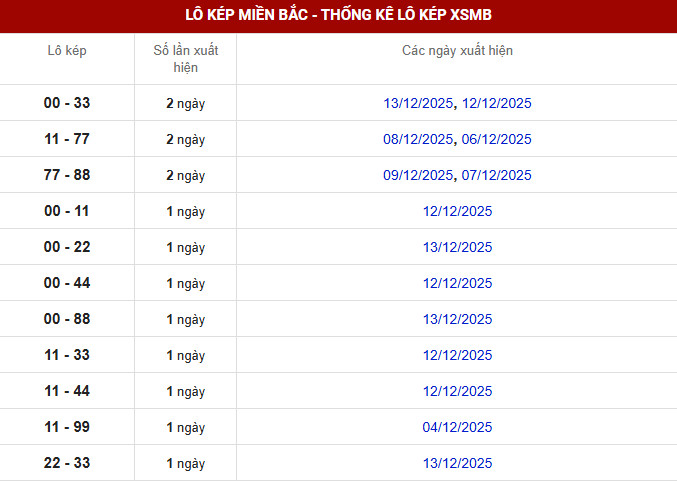⇒ Xem thêm: Bảng thống kê tần suất lô miền Bắc chi tiết.