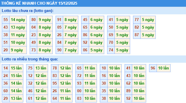 Thống kê miền Bắc nhanh ngày 15/12/2025