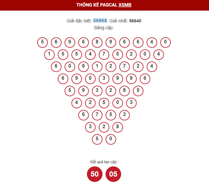 - Dựa vào thống kê Pascal, tham khảo cặp số đặc biệt dễ ra : 50 - 05