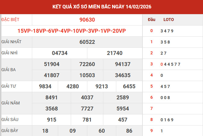 Căn cứ vào bảng kết quả xổ số miền Bắc ngày 14/2/2026 vừa được công bố, các chuyên gia tiến hành tổng hợp và phân tích các số liệu trọng tâm, qua đó mang đến những nhận định chi tiết nhằm hỗ trợ bạn đọc tham khảo và dự đoán XSMB 15/2/2026 một cách hiệu quả.​