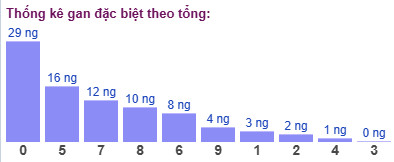 Thống kê cho thấy tổng đề lâu chưa xuất hiện nhất là tổng 0 (bao gồm 10 cặp số: 00, 19, 28, 37, 46, 55, 64, 73, 82, 91) đã 29 ngày chưa ra.