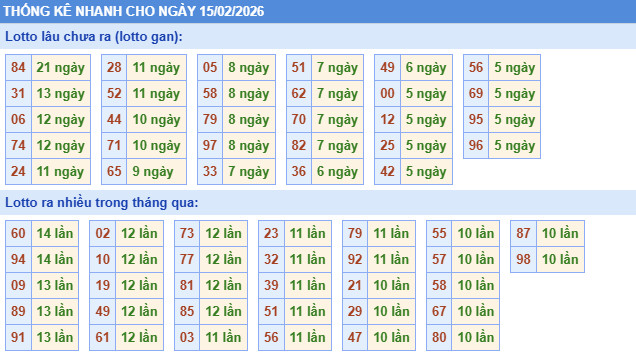 ​Thống kê lô tô miền Bắc nhanh ngày 15/2/2026