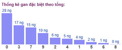 Thống kê cho thấy tổng đề lâu chưa xuất hiện nhất là tổng 3 (bao gồm 10 cặp số: 03, 12, 21, 30, 49, 58, 67, 76, 85, 94) đã 12 ngày chưa ra.