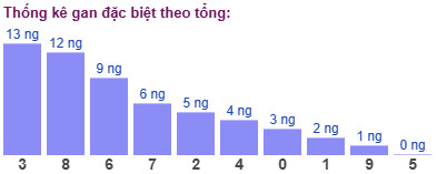 Thống kê cho thấy tổng đề lâu chưa xuất hiện nhất là tổng 3 (bao gồm 10 cặp số: 03, 12, 21, 30, 49, 58, 67, 76, 85, 94) đã 13 ngày chưa ra.