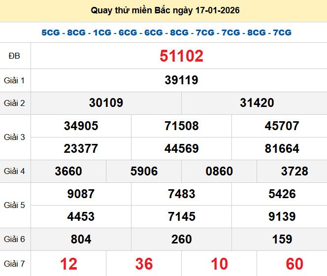 Tham khảo dự đoán xổ số miền bắc 17/1/2026 chuẩn xác, bạn sẽ nhận được các thông tin chi tiết về giải đặc biệt, giải tám, đầu đuôi, bao lô 2 số cũng như các thống kê khác đáng chú ý.