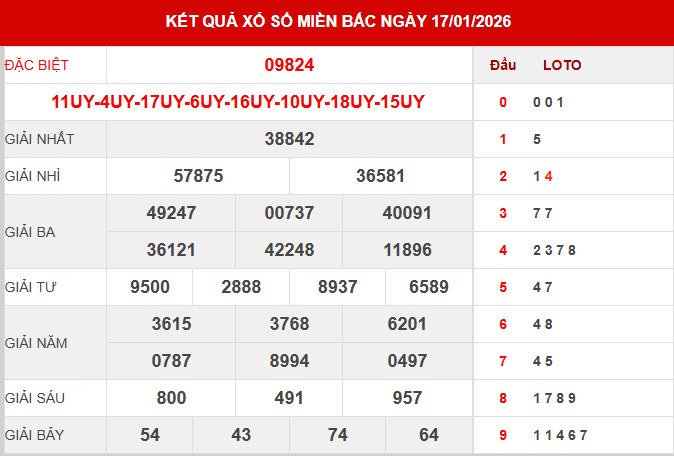 Căn cứ vào bảng kết quả xổ số miền Bắc ngày 17/1/2026 vừa được công bố, các chuyên gia tiến hành tổng hợp và phân tích các số liệu trọng tâm, qua đó mang đến những nhận định chi tiết nhằm hỗ trợ bạn đọc tham khảo và dự đoán XSMB 18/1/2026 một cách hiệu quả.