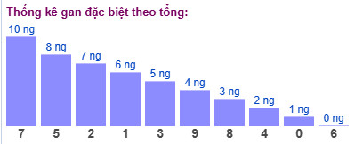 Thống kê cho thấy tổng đề lâu chưa xuất hiện nhất là tổng 7 (bao gồm 10 cặp số: 07, 16, 25, 34, 43, 52, 61, 70, 89, 98) đã 10 ngày chưa ra.