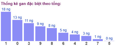 Thống kê cho thấy tổng đề lâu chưa xuất hiện nhất là tổng 1 (bao gồm 10 cặp số: 01, 10, 29, 38, 47, 56, 65, 74, 83, 92) đã 18 ngày chưa ra.