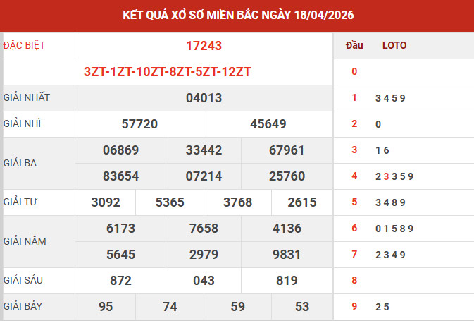 Căn cứ vào bảng kết quả xổ số miền Bắc ngày 18/4/2026 vừa được công bố, các chuyên gia tiến hành tổng hợp và phân tích các số liệu trọng tâm, qua đó mang đến những nhận định chi tiết nhằm hỗ trợ bạn đọc tham khảo và dự đoán XSMB 19/4/2026 một cách hiệu quả.