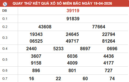 4. Quay thử xổ số miền Bắc ngày 19/4/2026 chủ nhật tối nay chuẩn xác