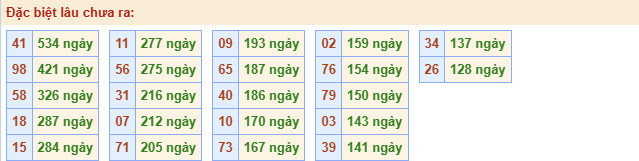 Thống kê cho thấy tổng đề lâu chưa xuất hiện nhất là tổng 3 (bao gồm 10 cặp số: 03, 12, 21, 30, 49, 58, 67, 76, 85, 94) đã 16 ngày chưa ra.