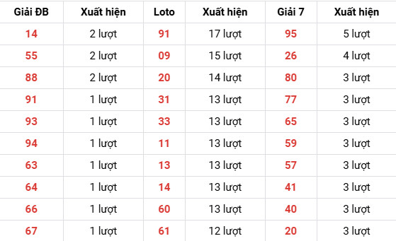 • 91 (17 lượt) → giữ vị trí cao nhất, rất ổn định.