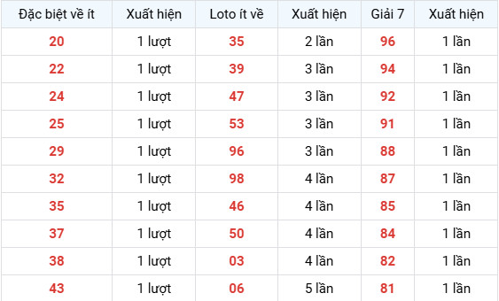 Thống kê đặc biệt, lô tô, giải 7 ít về trong 30' kỳ quay