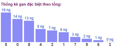 Thống kê cho thấy tổng đề lâu chưa xuất hiện nhất là tổng 5 (bao gồm 10 cặp số: 05, 14, 23, 32, 41, 50, 69, 78, 87, 96) đã 18 ngày chưa ra.