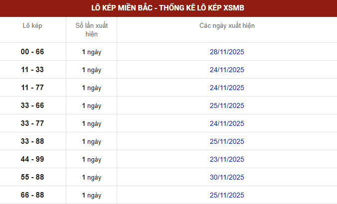 ⇒ Xem thêm: Bảng thống kê tần suất lô miền Bắc chi tiết.