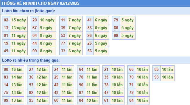 Thống kê miền Bắc nhanh ngày 2/12/2025