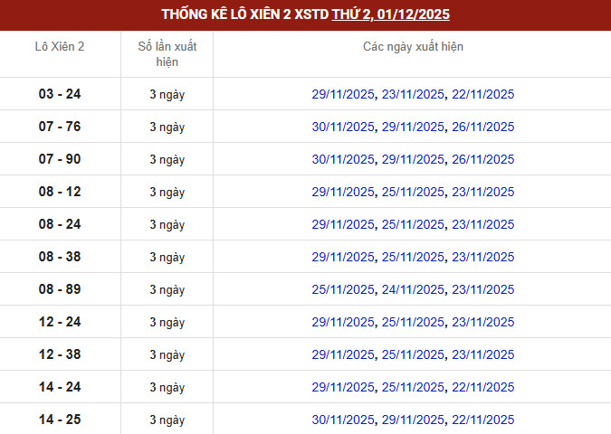 Mọi dữ liệu đều dựa trên thống kê kết quả XSMB những kỳ trước, nhận định hôm nay 2/12 và phân tích kỹ lưỡng, hỗ trợ người chơi lựa chọn con số may mắn với độ tin cậy cao.