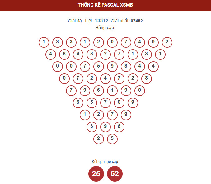 - Dựa vào thống kê Pascal, tham khảo cặp số đặc biệt dễ ra : 25 - 52
