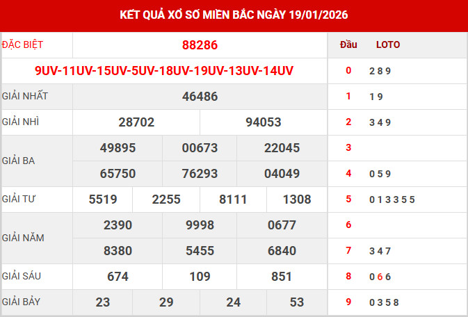 Căn cứ vào bảng kết quả xổ số miền Bắc ngày 19/1/2026 vừa được công bố, các chuyên gia tiến hành tổng hợp và phân tích các số liệu trọng tâm, qua đó mang đến những nhận định chi tiết nhằm hỗ trợ bạn đọc tham khảo và dự đoán XSMB 20/1/2026 một cách hiệu quả.